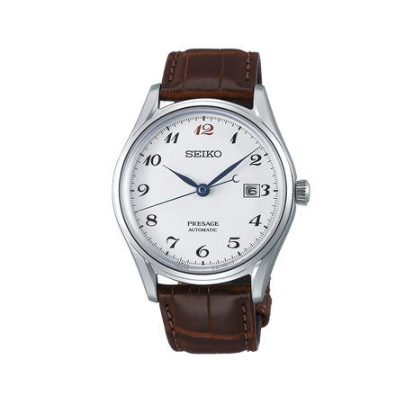 Japanese culture values beauty, tradition and purity, and this watch is a perfect reflection of these values. A true work of art, its white enamel dial is handmade and decorated with the number 12 in red as a tribute to the first watch manufactured by Seiko, the Laurel. You can admire the automatic movement at 28,800 vibrations per hour, the outcome of Nippon's savoir-faire, through the transparent case back.